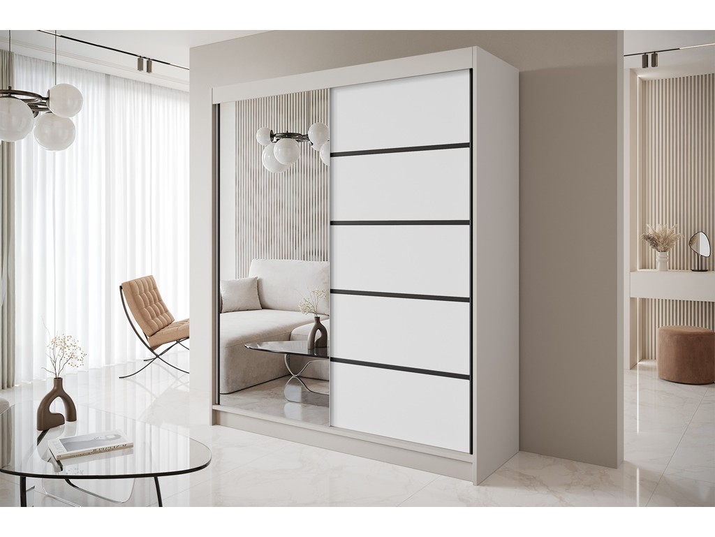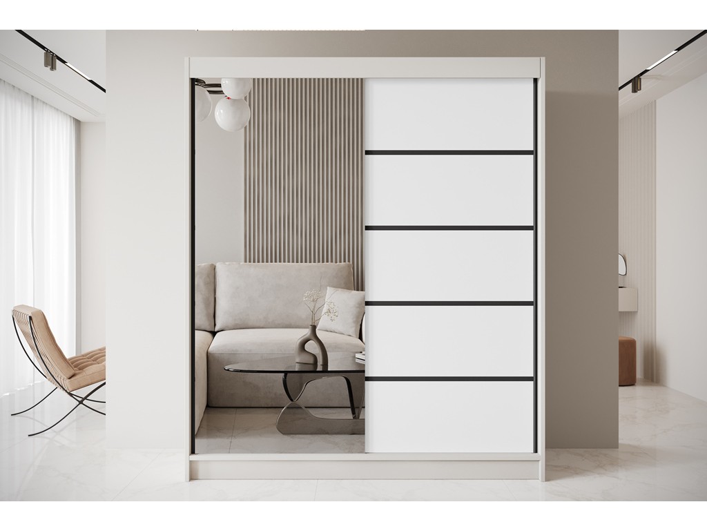 • Szafa przesuwna Nero 3 biały/czarny z lustrem 180 cm