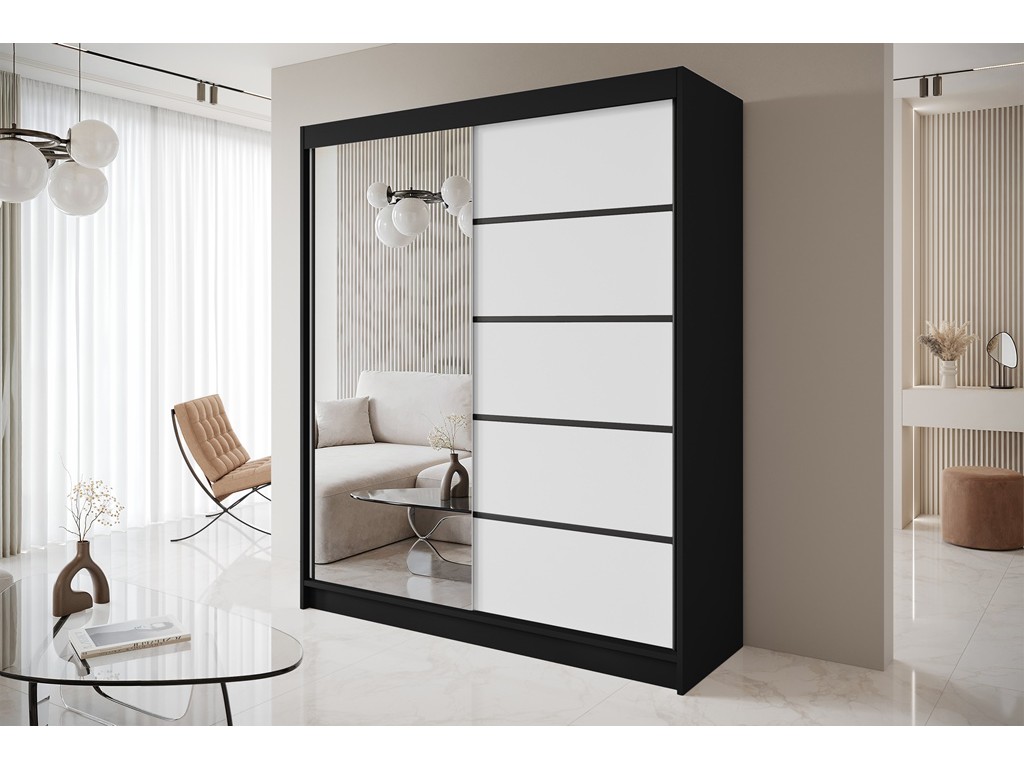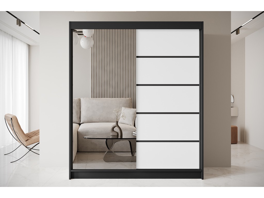 Szafa przesuwna Nero 3 czarny/biały z lustrem 180 cm