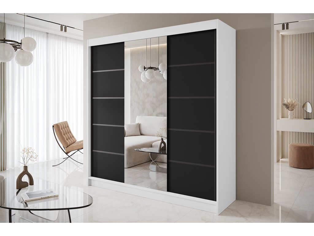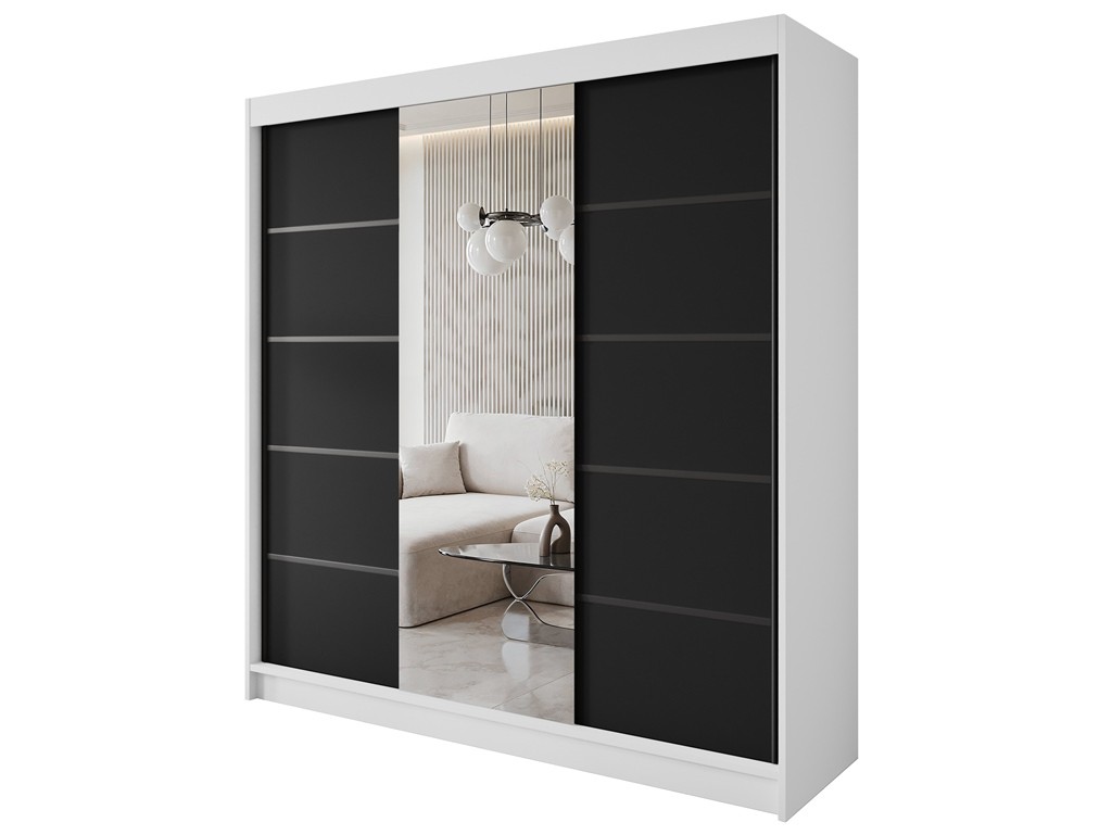 Szafa przesuwna Nero 6 biały/czarny z lustrem 200 cm