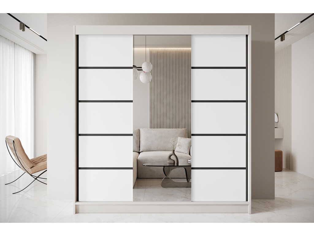 Szafa Nero 6 w rozmiarze 200 cm z lustrem sprawdzi się w nowoczesnych i klasycznych wnętrzach, wprowadzając elegancki akcent.