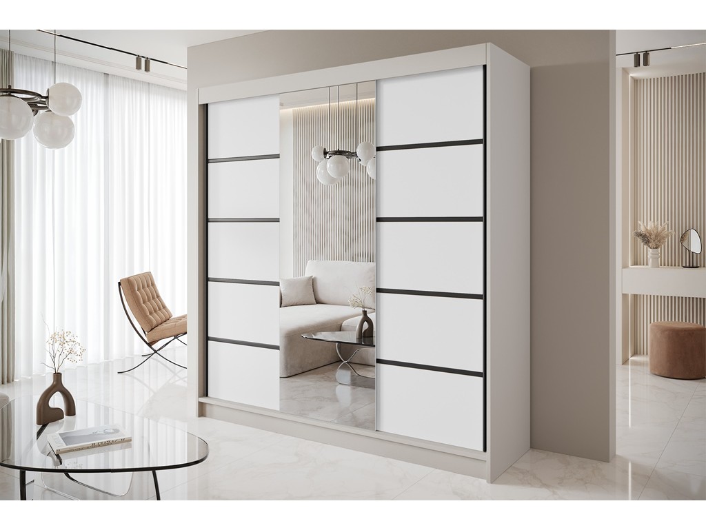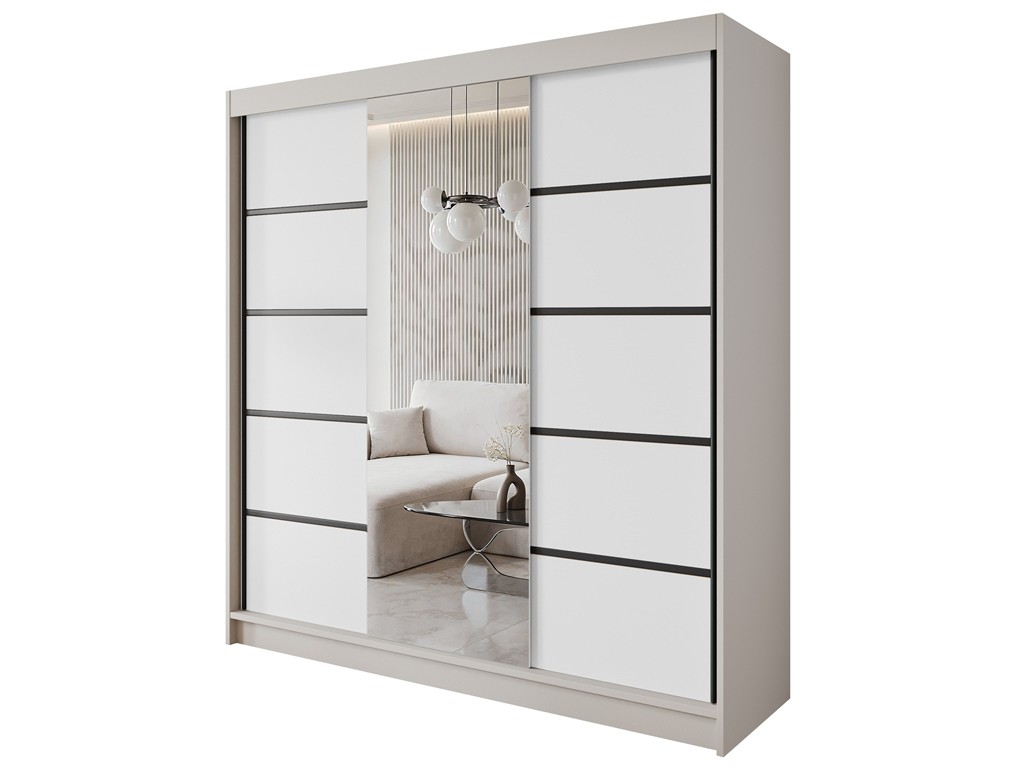 Szafa przesuwna Nero 6 kaszmir/biały z lustrem 200 cm