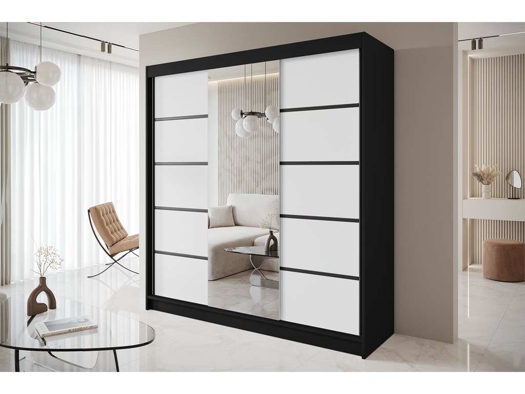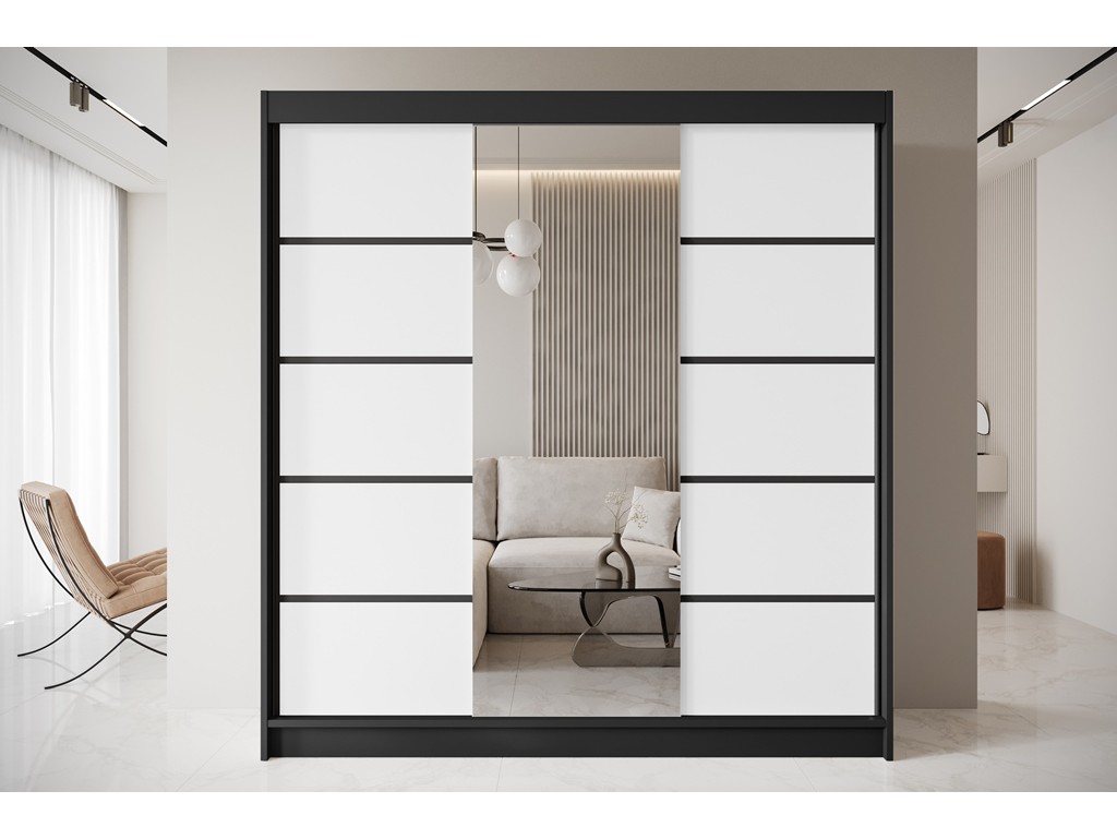 Szafa przesuwna Nero 6 200 czarny/biały z lustrem