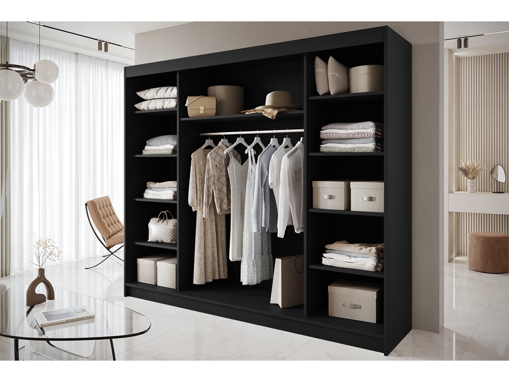 Szafa Nero 7 w rozmiarze 250 cm w kolorze czarny/biały sprawdzi się w nowoczesnych, przestronnych wnętrzach.