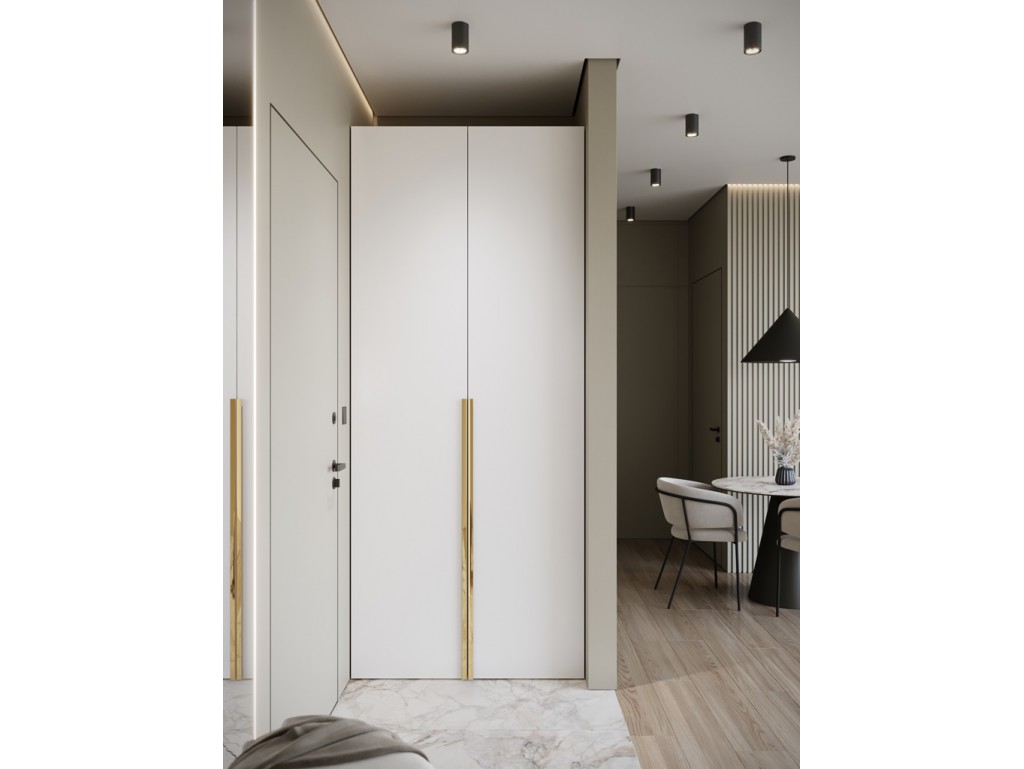 Szafa Alba 100 2D biała ze złotymi uchwytami łączy funkcjonalność z eleganckim wyglądem.