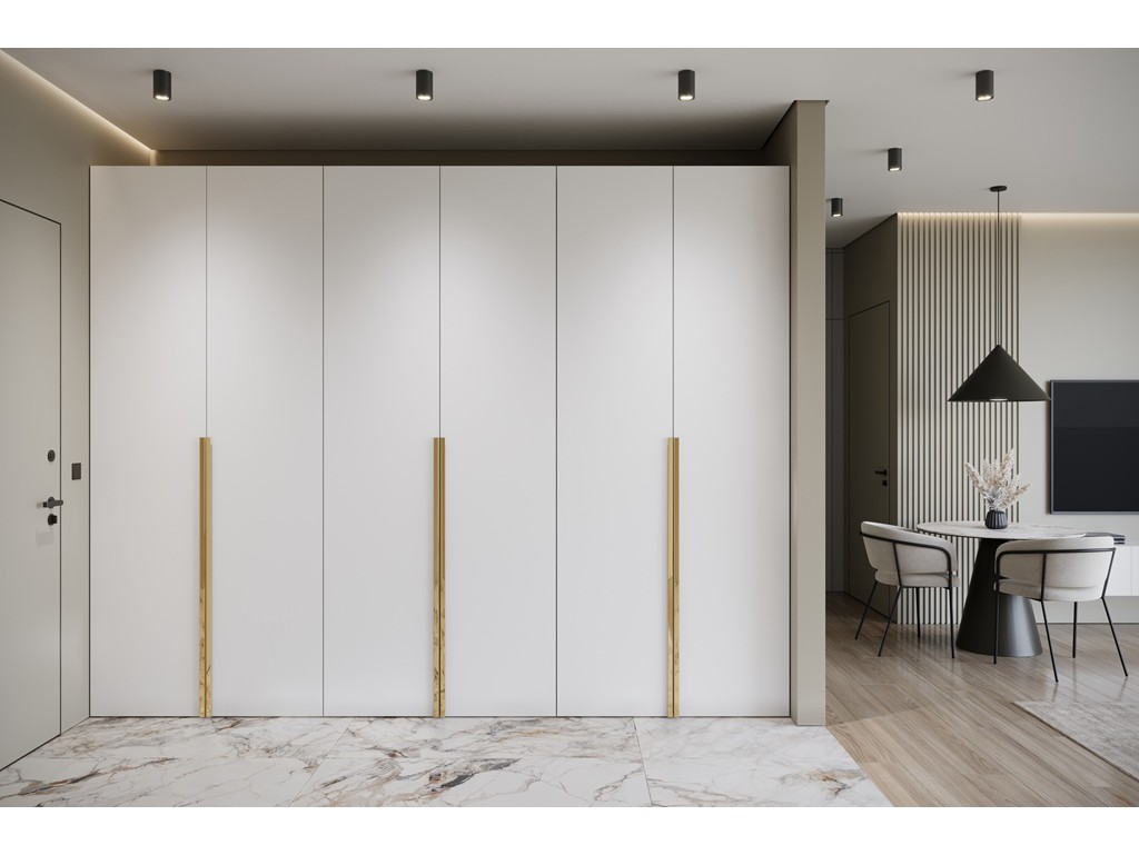 Jasny kolor w połączeniu ze złotymi detalami dodaje wnętrzu elegancji, a przestronne wnętrze pozwala na komfortowe przechowywanie odzieży i akcesoriów.