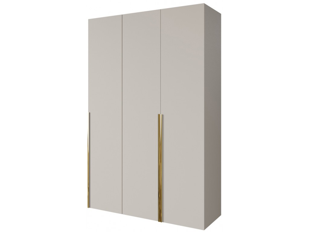 Szafa modułowa Alba 150 3D w kolorze kaszmir ze złotymi uchwytami łączy nowoczesny styl z klasyczną elegancją. Trzydrzwiowa konstrukcja zapewnia przestrzeń na ubrania, pościel i akcesoria, idealnie sprawdzając się w sypialni lub garderobie. Dostawa realizowana jest bez dodatkowych kosztów.