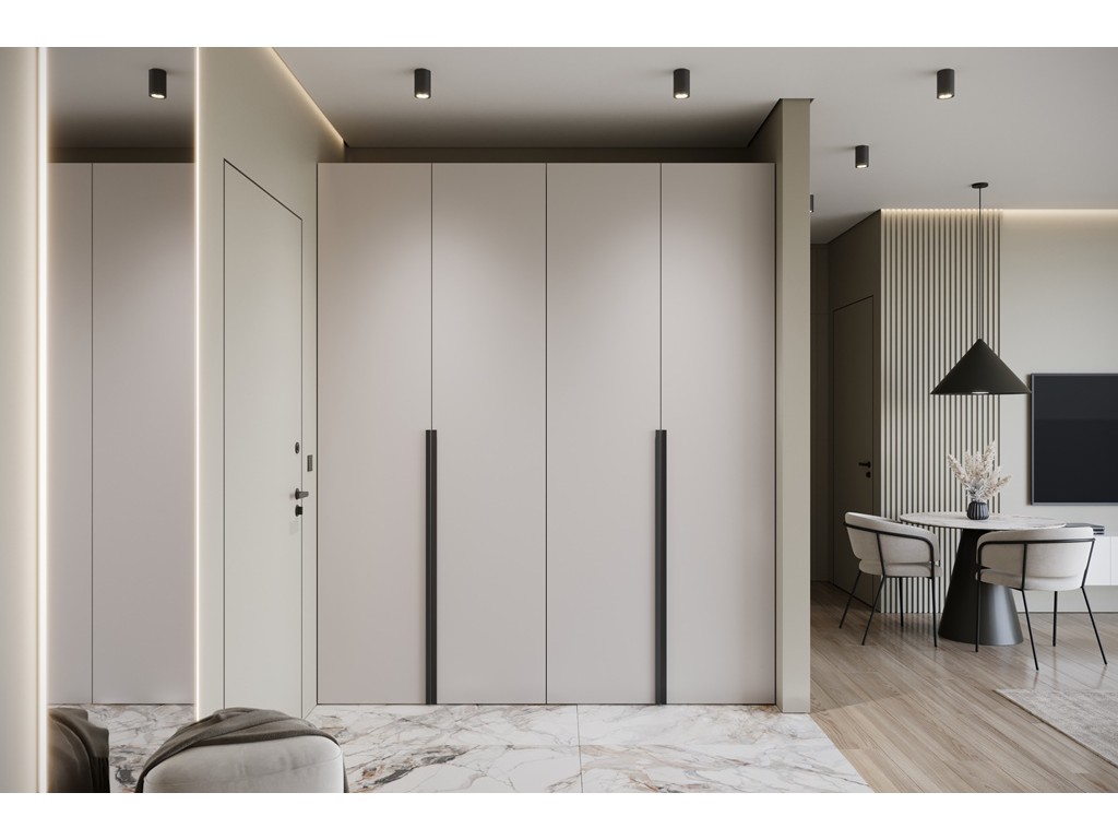 Prosta forma i subtelny kolor sprawiają, że mebel komponuje się z minimalistycznym i nowoczesnym wnętrzem.