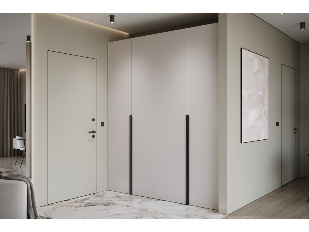 Szafa modułowa Alba 200 4D w kolorze kaszmir z czarnymi uchwytami to pojemny i nowoczesny mebel do sypialni lub garderoby. Cztery drzwi oraz wnętrze z półkami i drążkami zapewniają funkcjonalną organizację ubrań, a minimalistyczny design łatwo dopasować do różnych aranżacji. Produkt dostępny z darmową dostawą i możliwością samodzielnego montażu. ⟵Zobacz całą kolekcję szaf Alba