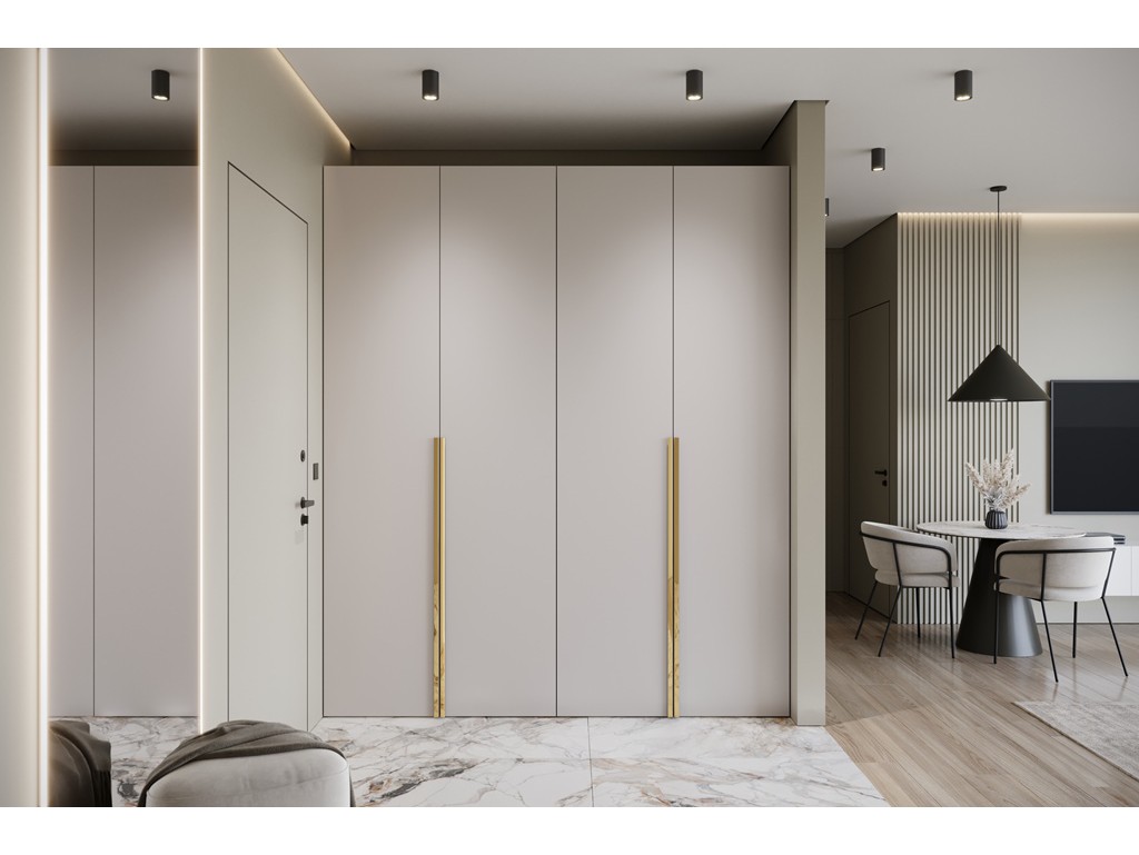 Szafa Alba 200 4D kaszmir ze złotymi uchwytami wprowadza do wnętrza harmonię i styl.