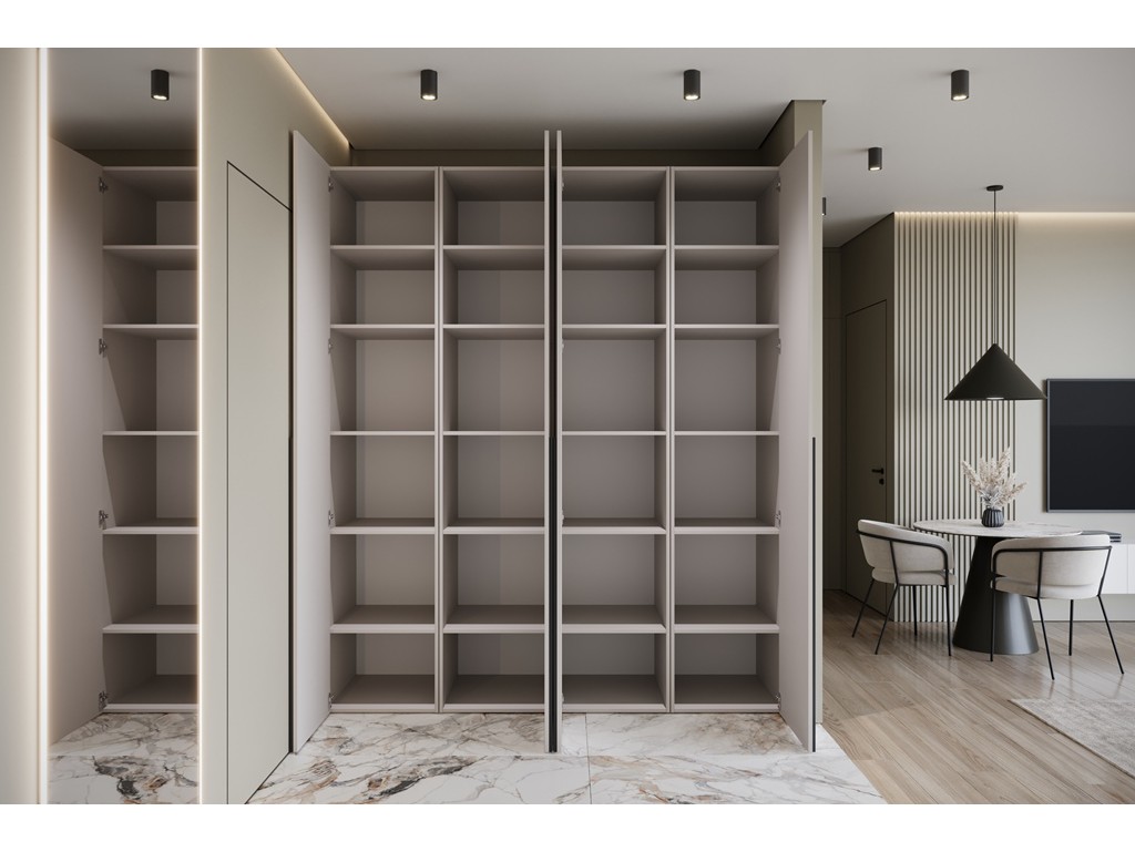 Modułowa konstrukcja umożliwia wygodne przechowywanie ubrań i akcesoriów w jednym miejscu.