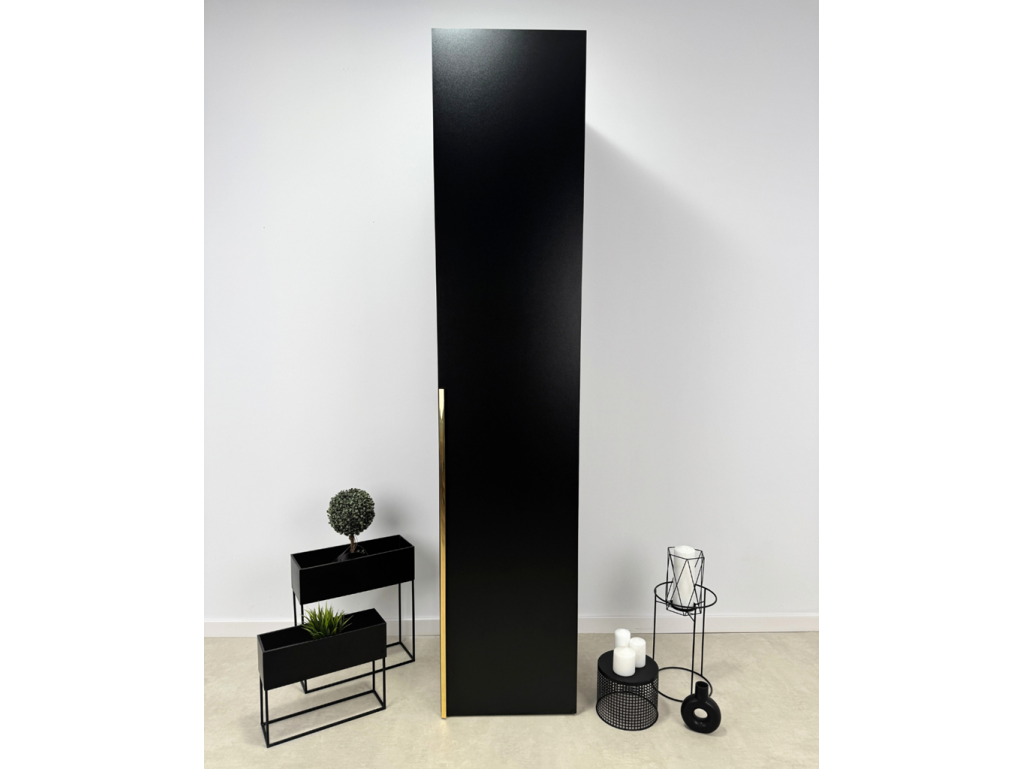 Szafa modułowa Alba 50 cm 1D w czarnym macie ze złotym uchwytem to elegancki mebel do nowoczesnych wnętrz. Kompaktowa forma i praktyczne wnętrze z półkami lub drążkiem umożliwiają funkcjonalne przechowywanie w małych i średnich pomieszczeniach. Dostawa odbywa się bezpłatnie, a montaż jest samodzielny.⟵Zobacz całą kolekcję szaf Alba