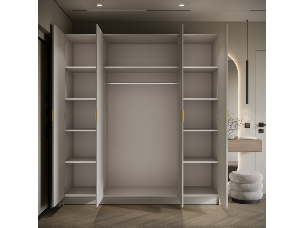 Szafa Kami 200 kaszmir złoty uchwyt łączy elegancję z funkcjonalnością.