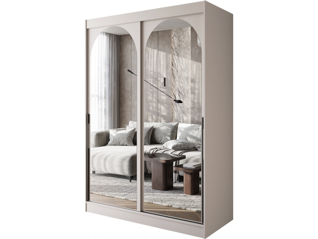 Szafa przesuwna Onli 150 kaszmir z czarnymi uchwytami łączy elegancję w ciepłym odcieniu z funkcjonalnością nowoczesnego wnętrza. Zaokrąglone lustra subtelnie rozjaśniają przestrzeń, a przestronne wnętrze z półkami i drążkiem umożliwia wygodne przechowywanie ubrań. Model sprawdzi się w sypialniach i garderobach, a dostawa realizowana jest standardowo w kilka dni.⟵Zobacz całą kolekcję szaf Onli