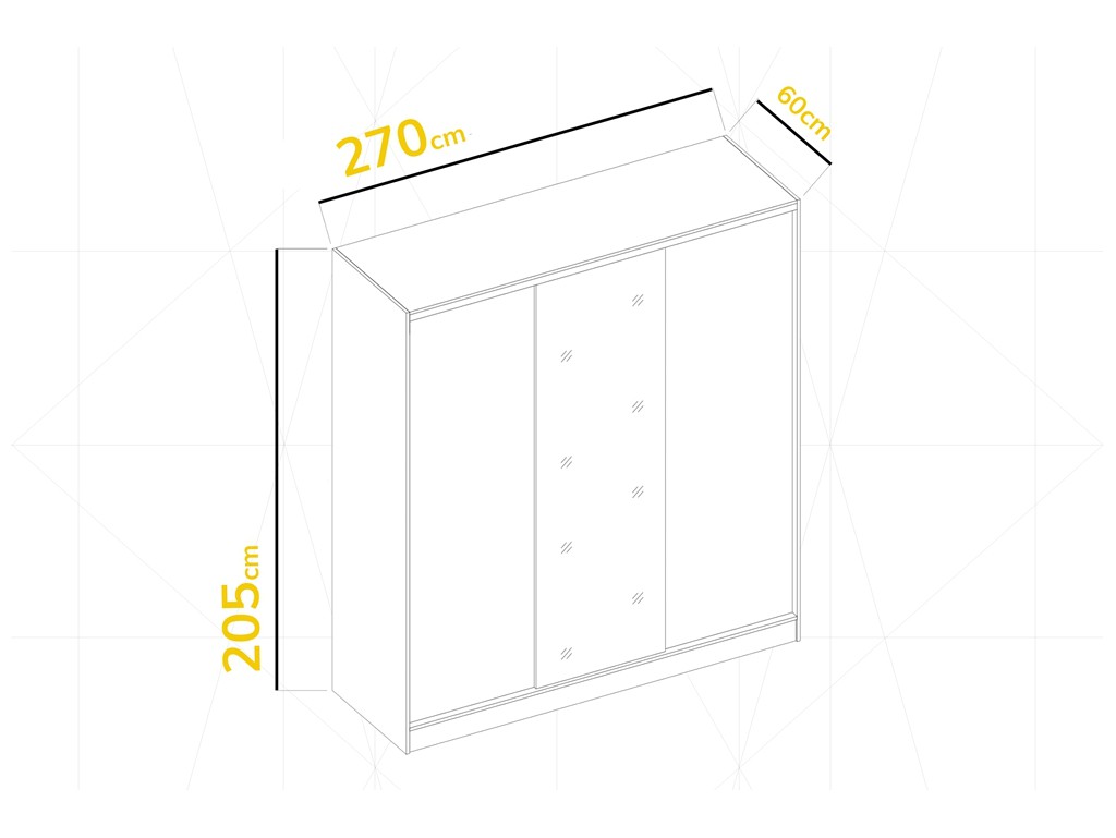 Lustro optycznie powiększa przestrzeń i rozjaśnia pomieszczenie, a szerokość 270 cm gwarantuje miejsce na wszystkie elementy garderoby.