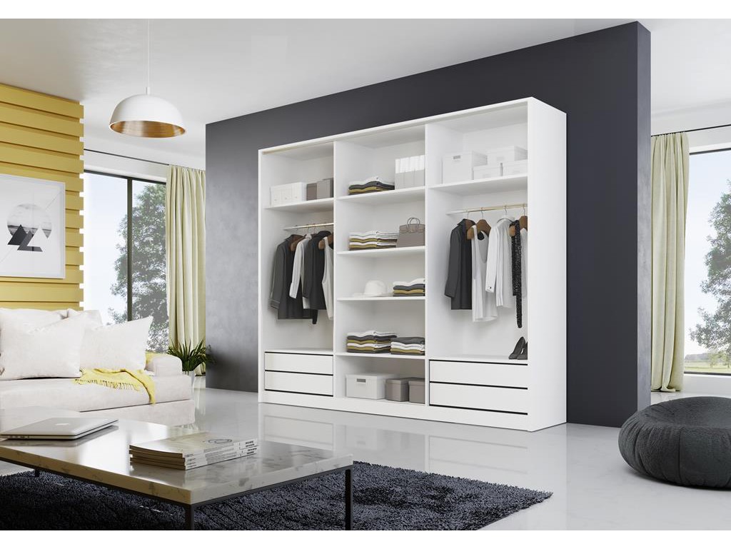 Szerokość 250 cm zapewnia dużą pojemność do przechowywania ubrań i dodatków.